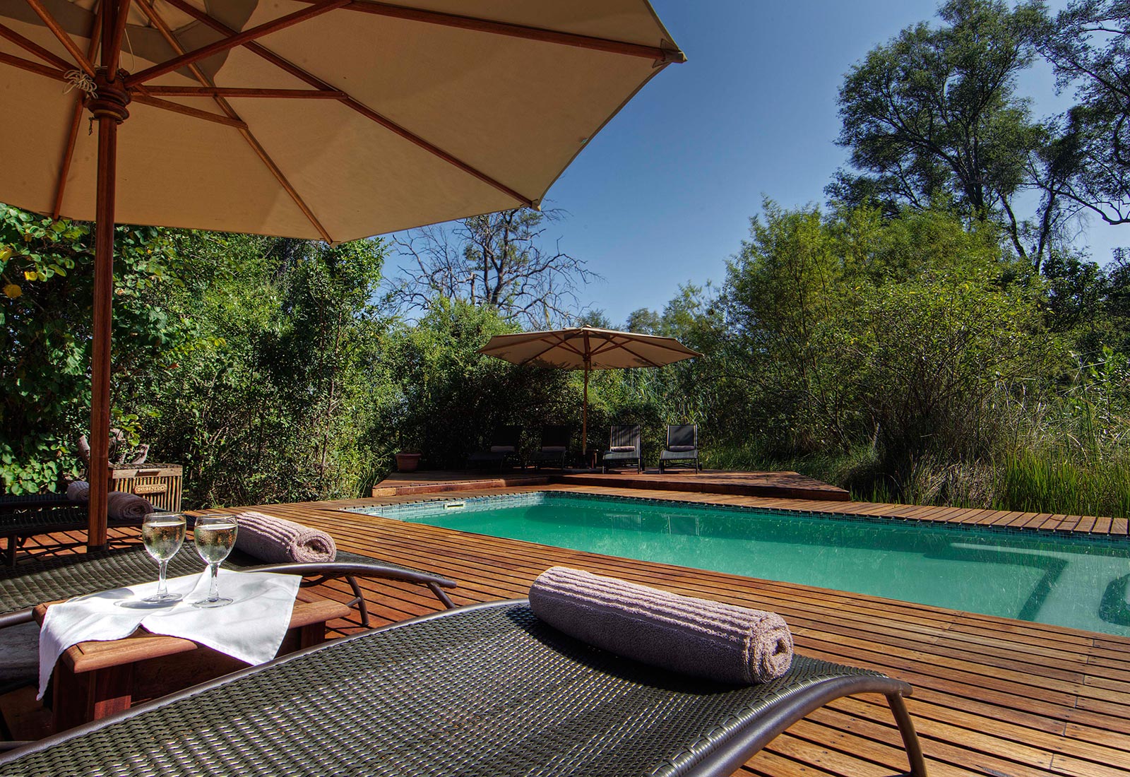 Det finnes en restaurant, bar og bibliotek, perfekt for de som ønsker å studere overfloden av dyr og fugler sett på safari litt mer detaljert. Det finnes også en boma hvor du kan nyte middagen ved ildstedet. Du opplever game drives om morgenen og ettermiddagen, men også safari i Okavango-deltaet.