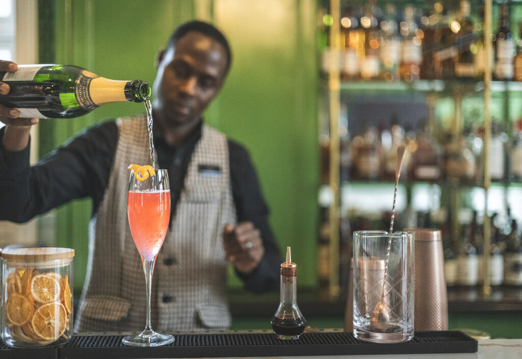 Den nye Cadogan Bar tilfører energi og en sosial atmosfære, mens en kuratert samling av moderne afrikansk kunst – i samarbeid med Everard Read – pryder veggene i hele hotellet. Cape Cadogan ligger på den travle Kloof Street, i nærheten av butikker, barer og restauranter, inkludert nabolagets egen Upper Union Restaurant. Spiseopplevelsen forsterkes av hotellets dyktige bartendere, som lager spennende cocktailer, og en velvalgt vinliste med både lokale og internasjonale favoritter.