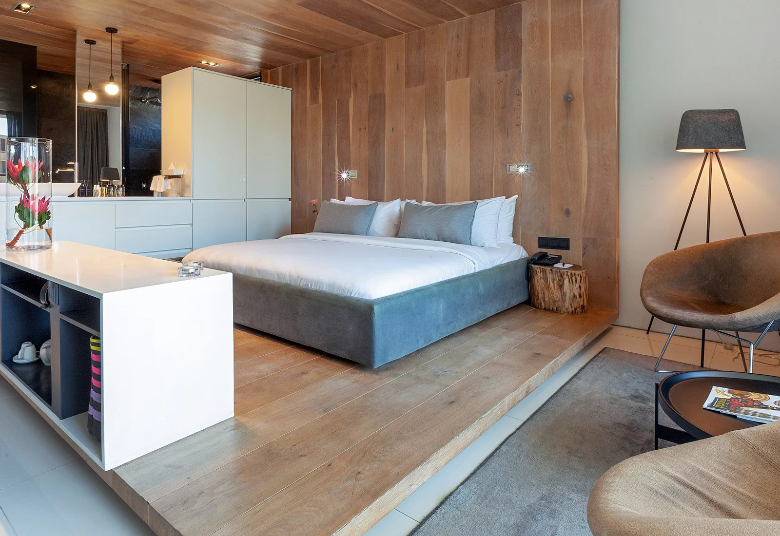 Her finner du alt fra smarte minimalistiske rom til luksuriøse suiter med balkong, havutsikt og til og med privat pool. Luksuriøst sengetøy, iPod-dokkingstasjon, Netflix og perfekt baderom gjør at du får lyst til å bli inne – helt til solnedgangen lokker deg ut på balkongen.