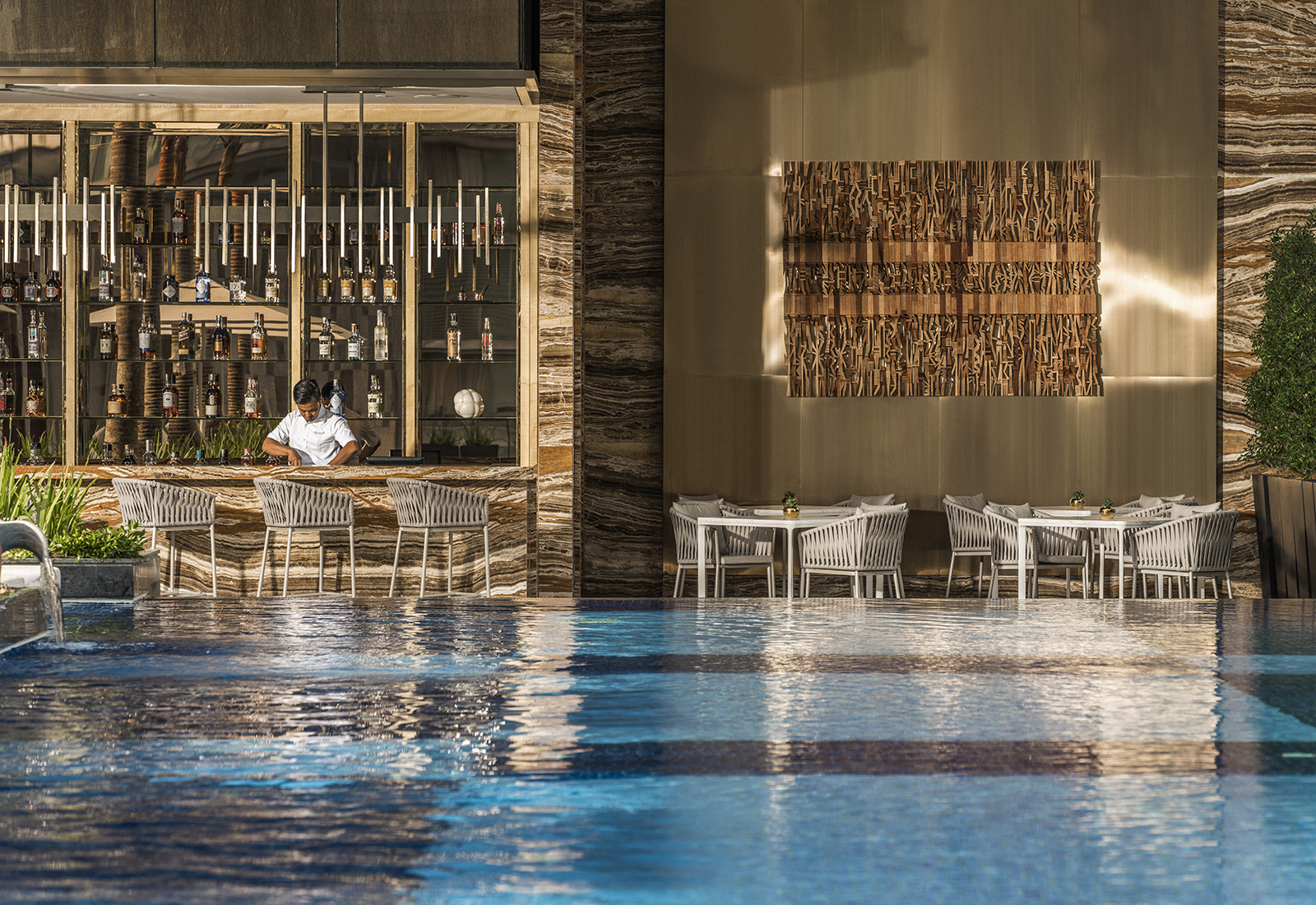 Hotellets kulinariske tilbud er både mangfoldig og førsteklasses, for eksempel Yun House – et anerkjent kantonesisk flaggskip som byr på utsøkte retter i en sofistikert atmosfære. I syvende etasje åpner seg et av hotellets mest imponerende rom: Infinity-bassenget med vidstrakt utsikt over byen – et