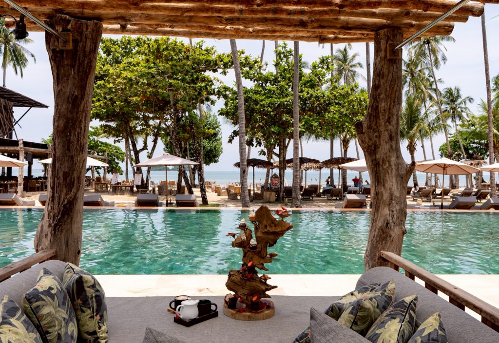 En av resortets mest slående trekk er de lange, smale bassengene som snor seg mellom villaene og boligene. Steinmurer, tropisk grøntområder og balkonger i naturlig tre skaper en tilbaketrukket og fredelig atmosfære. En av resortets mest slående trekk er de lange, smale bassengene som snor seg mellom villaer og boliger. Steinmurer, tropisk grøntområder og balkonger i naturlig tre skaper en tilbaketrukket og fredelig atmosfære. For et bredere utvalg av restauranter kan du enkelt ta en taxi til Kai Bae, bare noen få minutter sør. Det er også mulig å gå dit på omtrent 15 minutter. I Kai Bae finner du mange rimelige restauranter, små butikker og barer. På samme måte ligger landsbyen Klong Prao i nord innen gangavstand – omtrent 15 minutter. Den korteste veien dit er å krysse pontongbroen nær Centara Tropicana Resort og gå gjennom Blue Lagoon-bungalowene til landsbyen.