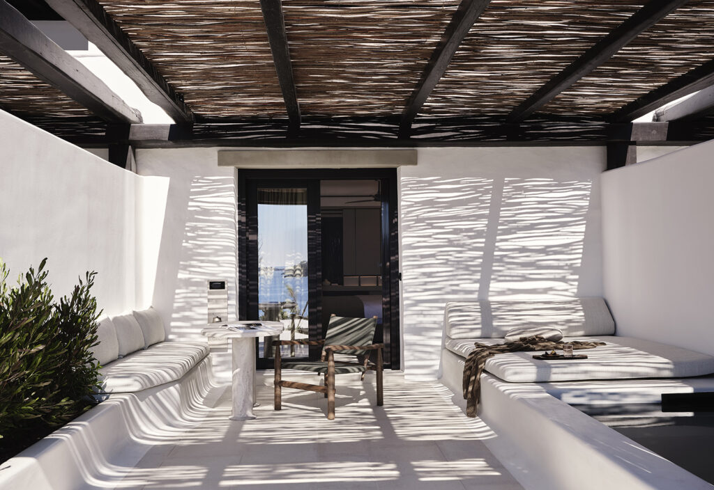 Kalesma har 13 1-roms suiter, 12 ett-roms villaer og de to store villaene Apollon og Artemis som blander lokal stil med høy estetikk, og gir gjestene følelsen av å være i autentiske mykoniske omgivelser. Inspirert av kykladisk arkitektur, kombinerer Kalesma tradisjon med moderne elementer, og tilbyr elegant og minimalistisk interiør laget med lokale materialer.