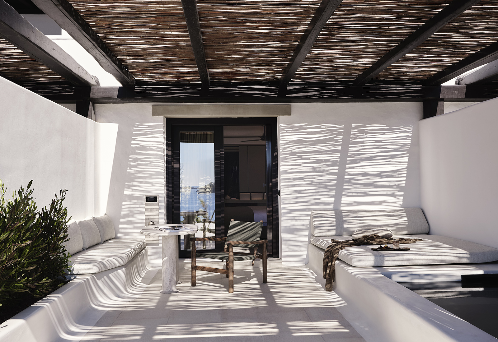 Feriestedet snor seg ned en skråning til Ornos Bay, og ligger kun en kort spasertur fra Ornos Beach.