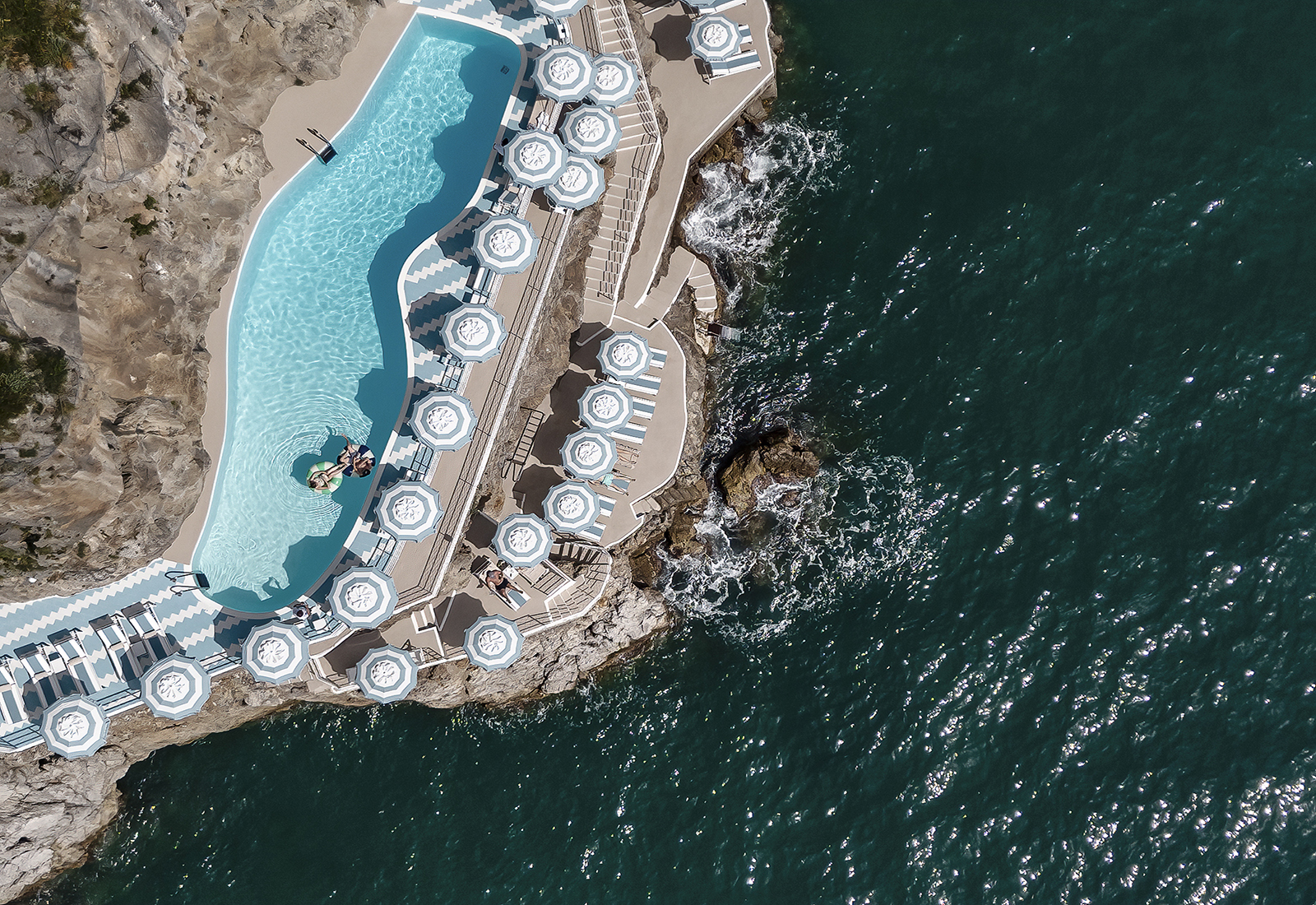 Hotellet er designet med myke linjer og lyse farger som fanger essensen av Middelhavet. De 36 moderne, lyse rommene og suitene byr på havutsikt, håndlagde keramiske detaljer og private terrasser – det perfekte stedet for en lang frokost, en rolig ettermiddag eller en magisk soloppgang. Hotel Miramalfi tilbyr et av kystens mest ikoniske strandklubbsområder. En heis hugget direkte inn i klippeveggen tar gjestene ned til et saltvannsbasseng, solterrasser i flere nivåer og krystallklart vann. Her går tiden sakte – mellom en dukkert i havet, en forfriskende cocktail og lyden av bølger som slår mot klippen.