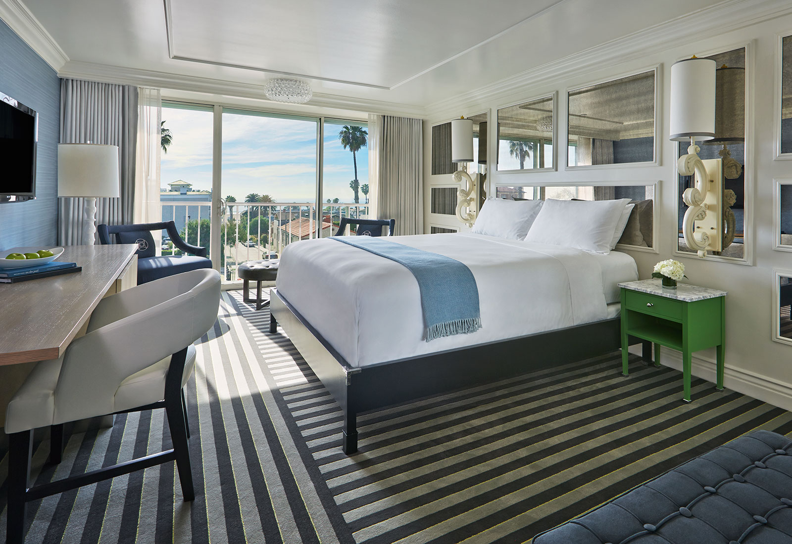 Hotellet ligger rett ved siden av 3rd Street Promenade med shopping, underholdning og restauranter og stranden kun et steinkast unna. Vi liker virkelig den nydelige restauranten, bassengområdet og den glamorøse atmosfæren. Og – med Santa Monica får du Los Angeles på kjøpet, og det er enkelt å kombinere solferien med storbyen.